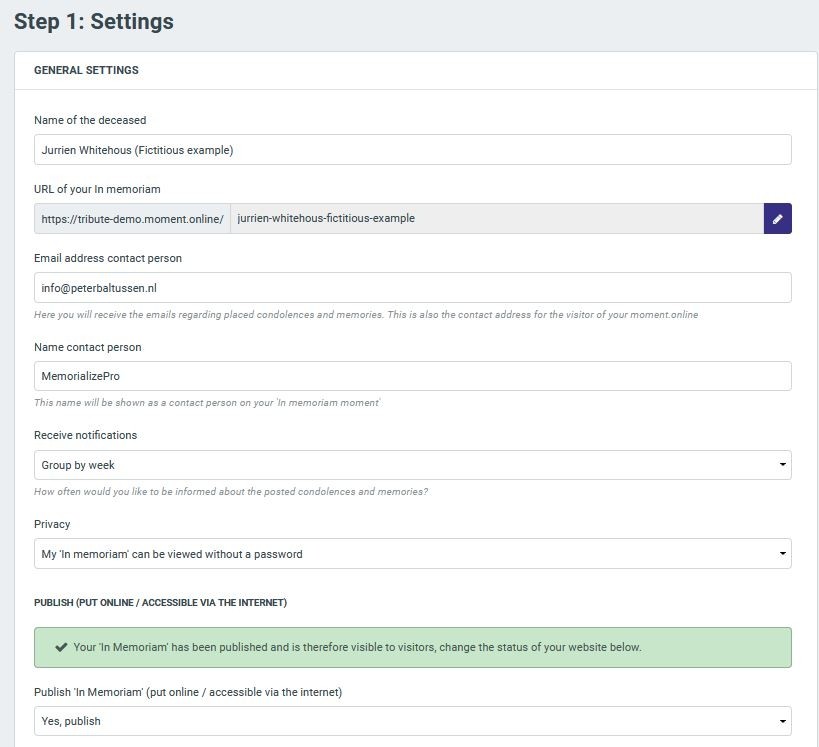 You will receive a code to create a "Personal In Memoriam Website". This will give you a good idea of whether the SaaS solution meets your needs.