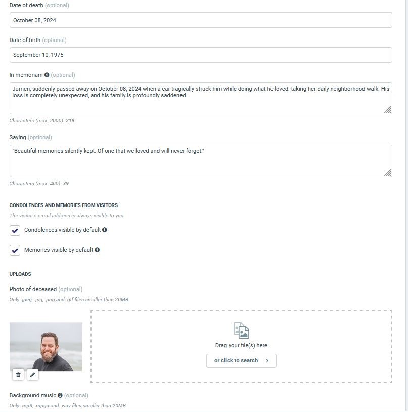 MemorializePro is a proven platform since 2018 for creating "Personal In Memorial Websites" in a safe and simple way.